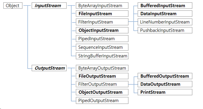 - ๋ชจ๋ ๋ฐ์ดํธ ์คํธ๋ฆผ ํด๋์ค๋ InputStream๋ฐ OutputStream ํด๋์ค์ ์๋ธ ํด๋์ค