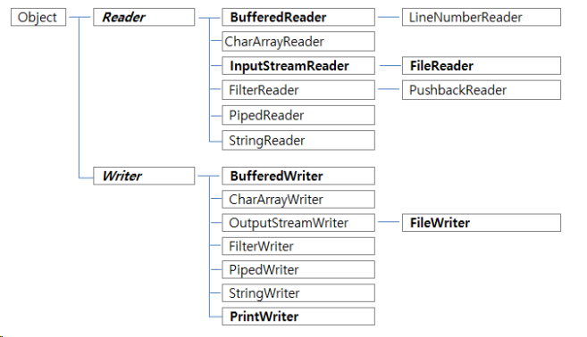 - ๋ชจ๋ ๋ฌธ์ ์คํธ๋ฆผ ํด๋์ค๋ Reader ๋ฐ Writer ํด๋์ค์ ์๋ธ ํด๋์ค