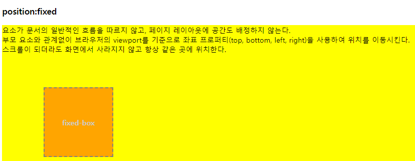 ๋ถ๋ชจ ์์์ ๊ด๊ณ์์ด ๋ธ๋ผ์ฐ์ ์ viewport๋ฅผ ๊ธฐ์ค์ผ๋ก ์ขํ ํ๋กํผํฐ(top, bottom, left, right)์