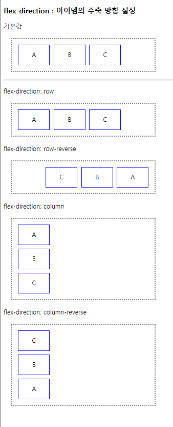 | flex-direction | νλμ€ μ»¨ν μ΄λ λ΄μ μμ΄ν μ λ°°μΉν λ μ¬μ©ν μ£ΌμΆ λ° λ°©ν₯μ μ§μ νλ€. |